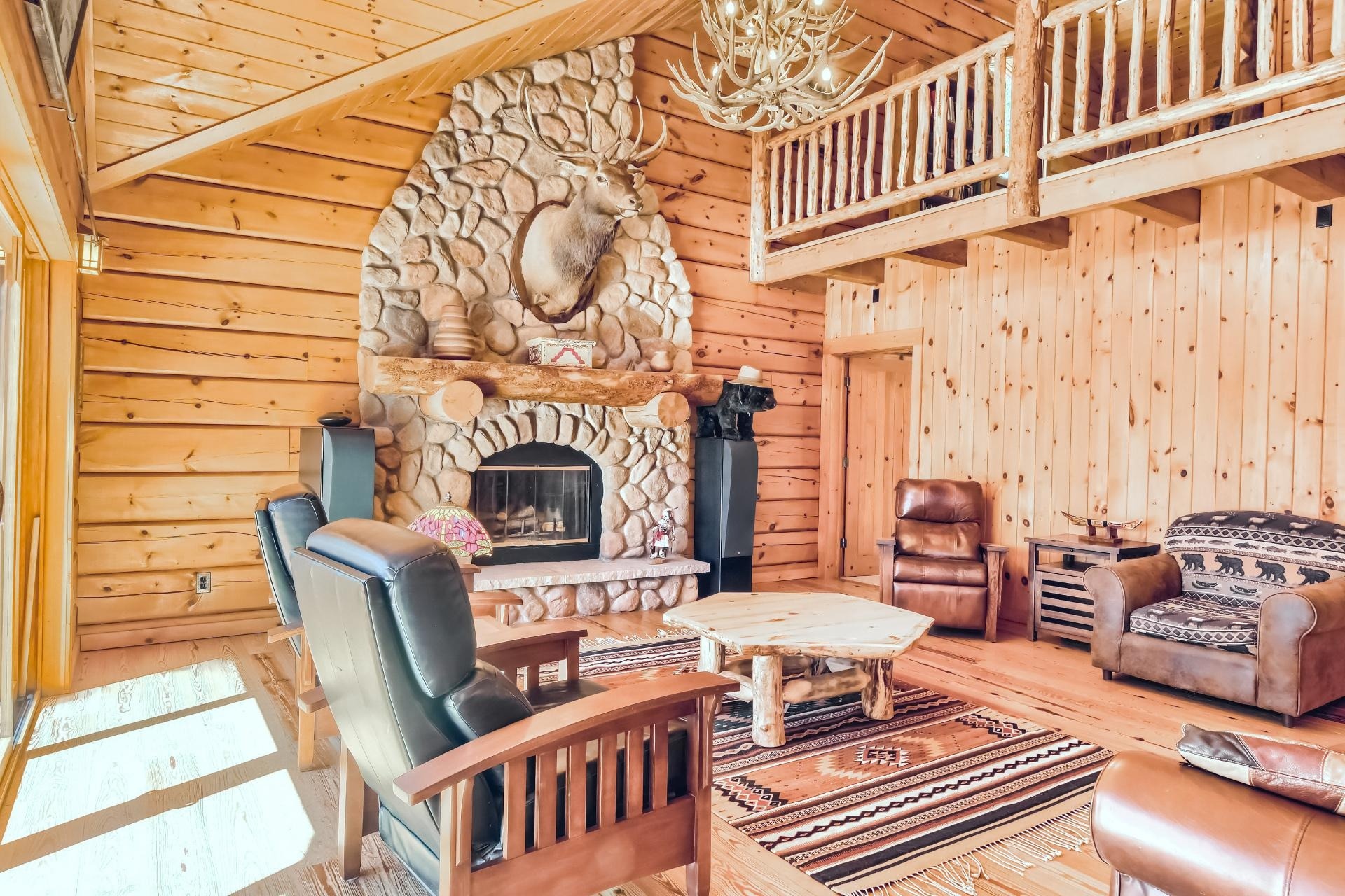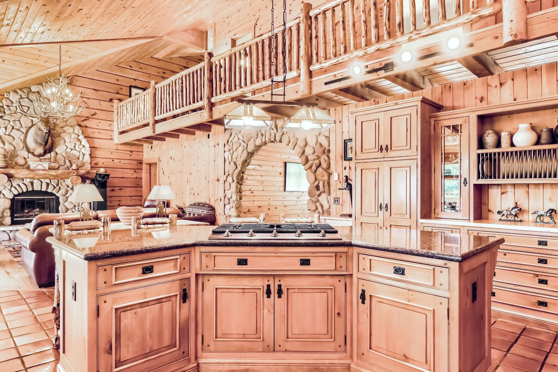 1, Wood Burning, River Rock Masonry, Great Room