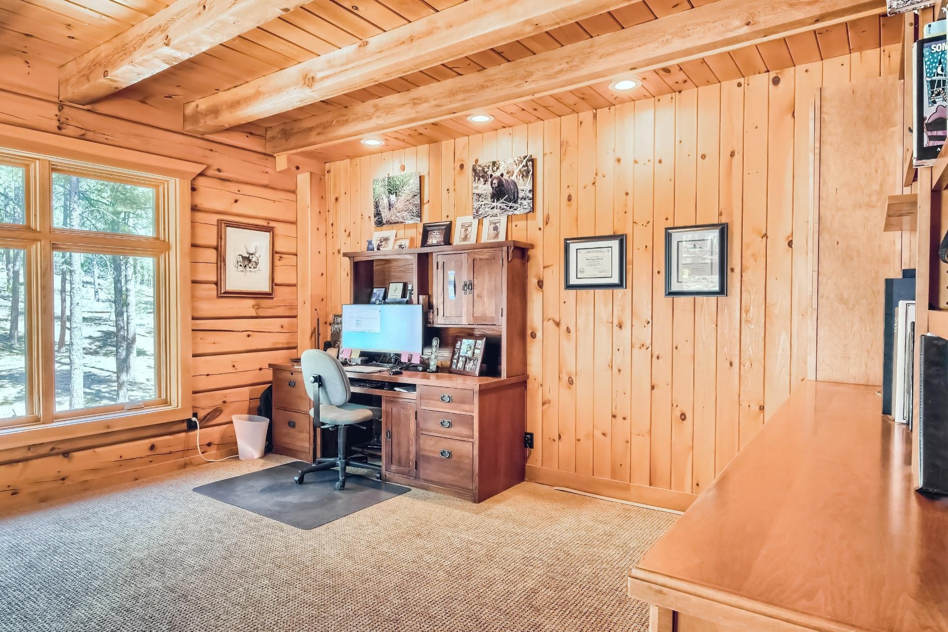 Bay Windows, Breakfast Bar & Nook, Built-ins, Ceiling Fans, Central Vacuum, Foyer, Kitchen Island, Knotty Pine, Slab Granite